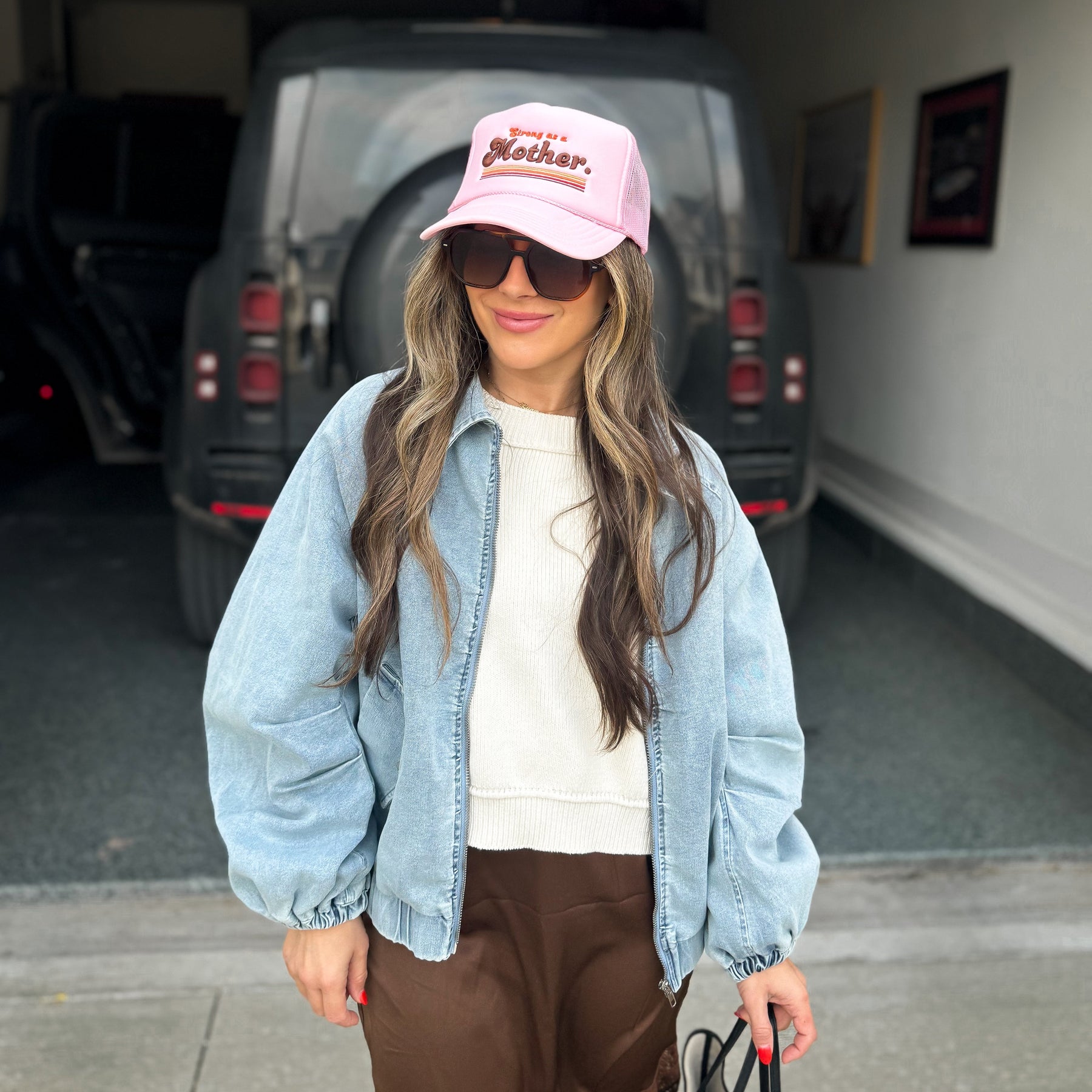 RETRO MOTHER. -  Embroidered Trucker Hat - Pink
