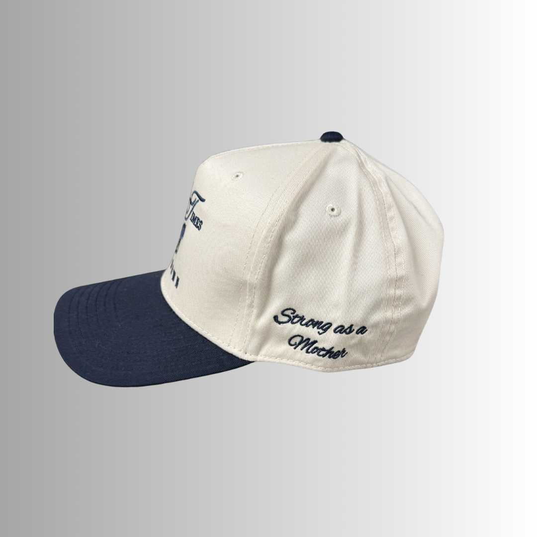 Logos are embroidered on the front and Strong as a mother® is embroidered on the side